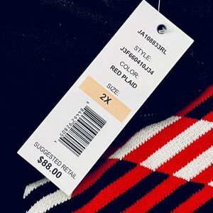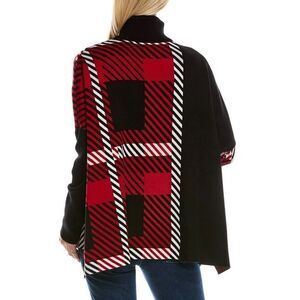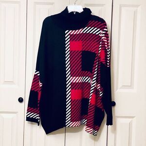 NWT Joseph A 2X Red & Black split stripe long sleeve turtleneck poncho sweater