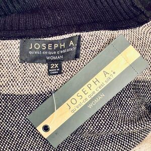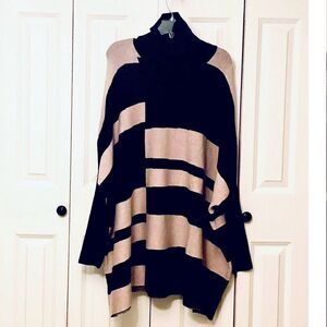 NWT Joseph A. 2X Tan & Black split stripe long sleeve turtleneck poncho sweater