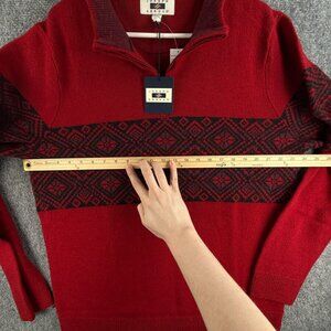 NWT Joseph Abboud Red Fair Isle Wool Blend 1/4 Zip Pullover Sweater 2XL - $80