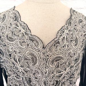 NWT Joseph Ribkoff Sheer Black & Lace Stretch Blouse - Size Medium Large