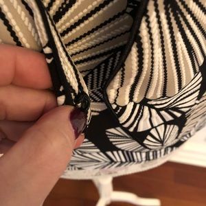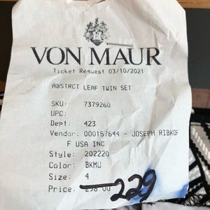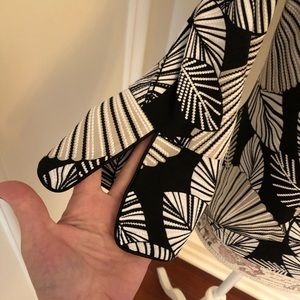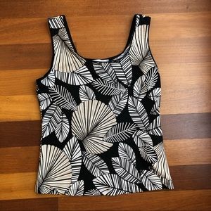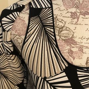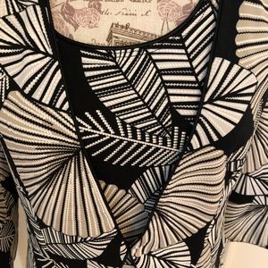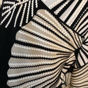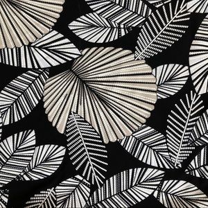 Beautiful very stretchy knit set in an abstract leaf print in black, white, light tan.