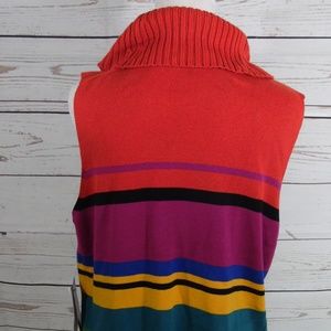 NWT Josephine Chaus Sport Cowl Neck sweater size XL. Sleeveless Cowl Neck Sweater. Bright color block design Black, red, gold, magenta, green, turquoise and blue. 55% Acrylic 45% Cotton