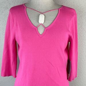 NWT Josephine Chaus Womens Pink 3/4 Sleeve Blosus Top with Jewel at Neck Size L