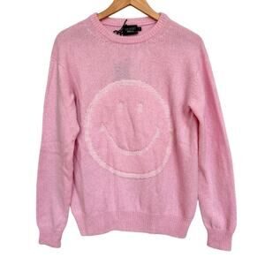 Joshua Sanders sweater, pink smiley sweater, dopamine dressing knit, luxury Italian streetwear, cashmere blend crewneck, happy face pullover, women’s designer sweater size small