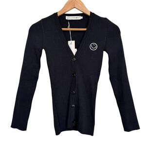 NWT Joshua Sanders Ribbed Smiley Logo Cardigan Sweater Black – Size S Italy