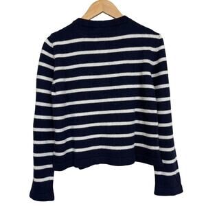 Joshua Sanders cardigan, smiley face cardigan, navy stripe sweater, Breton stripe knit, luxury Italian cardigan, dopamine dressing sweater, wool cashmere cardigan, women’s designer size M