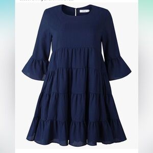 NWT Joteisy Ruffle Sleeve Dress, Navy Round Neck Loose Fit Casual Swing Short
