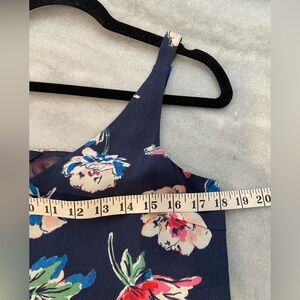Navy blue floral v neck pullover lined tank top
