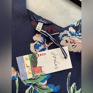 NWT Joules Size 4 Navy Blue Pink Floral V Neck Tank Top Flowy Lined Split Hem