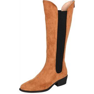Full Title: Journee Collection Celesst Comfort Foam Stacked Heel Knee High Boots Cognac 7M
