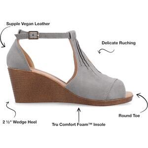 NWT Journee Women's Collection Kedzie Wedge Sandal, Grey, 6