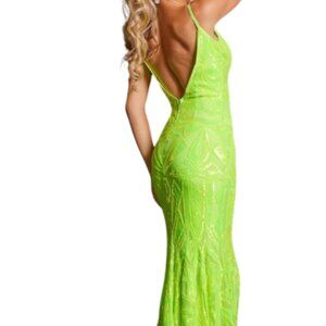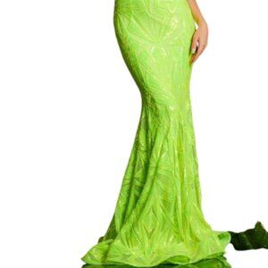 NWT Jovani 36656 Prom Dress Sequin/Sheer Neon Green Size 10