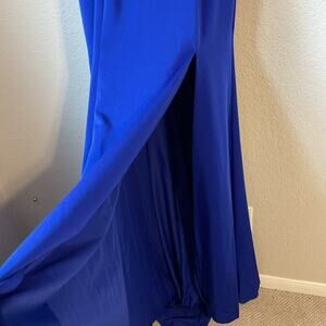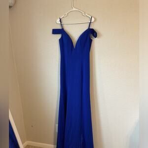 New with tags Jovani royal blue v-neck gown with a side slit.