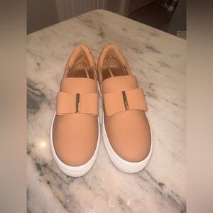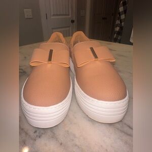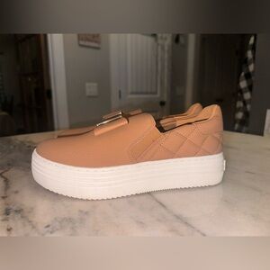 NWT Joy Size 8 Women's Tan Slip-On Platform Sneakers with Bow