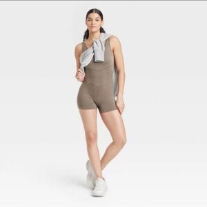 NWT JoyLab Women's Seamless Short Active Bodysuit in persuading gray