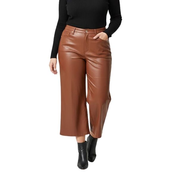 Judy Blue, 13/31, Size 13, Size 31, Faux Leather Pants, Camel Brown, Tummy Control, Wide Leg Crop, High Waist, Stretch Leather, Vegan Leather, Office Siren, Mob Wife Aesthetic, Trendy, NWT, Designer Denim, Fall Fashion, Winter Outfit.