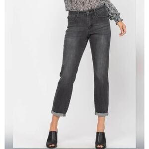 NWT Judy Blue Boyfriend Fit Cuffed Jeans Sz 16W Women’s JB88130 Black Pants NEW