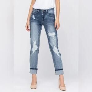 NWT Judy Blue Boyfriend Fit Mid Rise Jeans Distressed Denim Womens Size 3/26