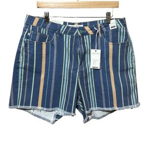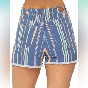 NWT - Judy Blue High Waist Striped Denim Fray Hem Shorts - Size 2X