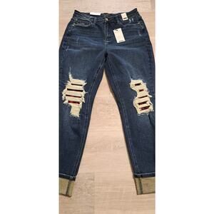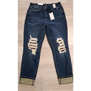 NWT Judy Blue Jeans Buffalo Plaid Destroyed Knee Boyfriend 11/30 Midrise