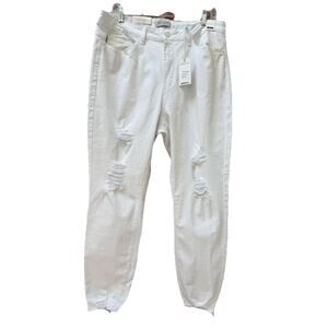 NWT Judy Blue Jeans Womens 16W White Denim Skinny Distressed Stretch Mid Rise