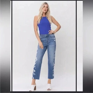 NWT Judy Blue Laila High Waisted Straight Side Distressed Jeans Size 7/28.