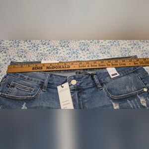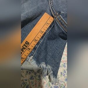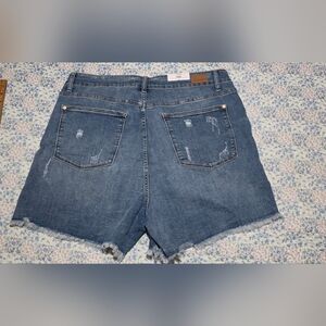 New, never worn Judy Blue jean shorts - blue w/orange flower patches.. In excellent condition.