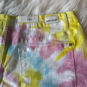 NWT Judy Blue Womens Swirl Tie Dye Shorts Size 2XL Multicolor High Waist Boho