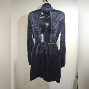 New with tags Juicy Couture Black Label Velour baby doll dress with mock neck and open back! Marked size small, laid flat measurements: chest 16.5", waist 13", length from armpit 26". The short mini length and open back BUT mock neck... sexy AND cute at the same time, not to mention comfy in Velour!