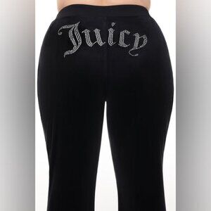 NWT Juicy Couture Black OG Big Bling Velour Track Pant 1X Plus Size Pull On Y2K