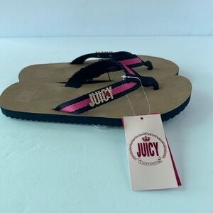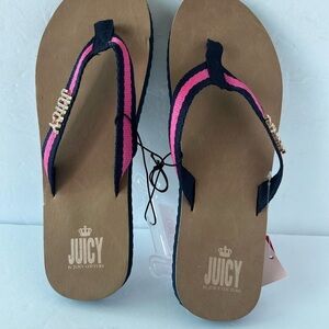 New with tags Juicy Couture flipflops. Navy Blue and pink with detailed Juicy on each sandal.