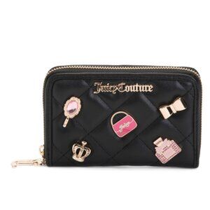NWT Juicy Couture Girls Only Med Tab Zip Around Black Quilted Charmed wallet bag