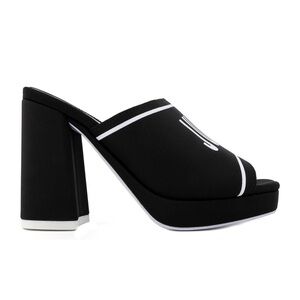NWT Juicy Couture Girly Black Open Toe Chunky Heel in Black & White