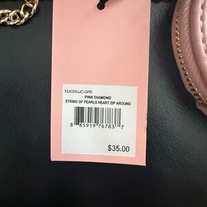 NWT Juicy Couture Heart-Shaped Pink Diamond String of Pearls Zip Around