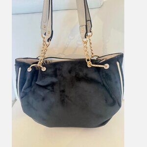 Liquorice Black Velour with cream faux leather and gold tone hardware