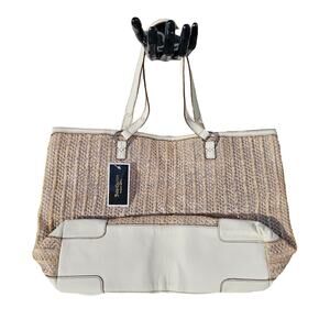 NWT & Defects - Juicy Couture 'Palm Spring Dorrit' Straw & Faux Leather Tote Bag.