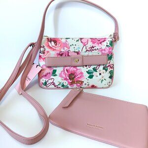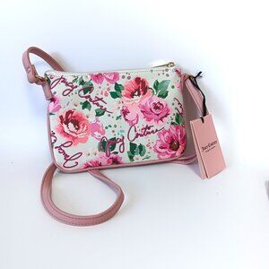 New with tags. Juicy Couture Peek a Bow crossbody 2-piece set. Removable pink zipper top pouch. Pick UR Petal (Pink Floral & Solid Pink Pouch)