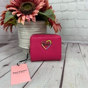 NWT Juicy Couture Pink flash love mode Heart Embellished small zip around Wallet