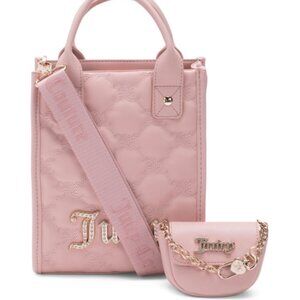 NWT Juicy Couture Quilted Pink Handbag 2 pc Tote Gift Set with Purse Coin Pouch