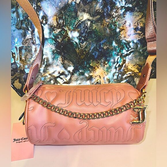 NWT Juicy Couture Quilted Taffy Pink Juicy Chain Barrel Crossbody Bag