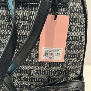 NWT Juicy Couture Spooky Juicy Mini Backpack with adjustable back straps. Hanging ghost with pink heart Hangtag. Large outside zipper pocket. Hand, shoulder or back carry. Goldtone Juicy on the front. Zipper closure. Inside has a zipper and slip pocket on opposite sides of the backpack.