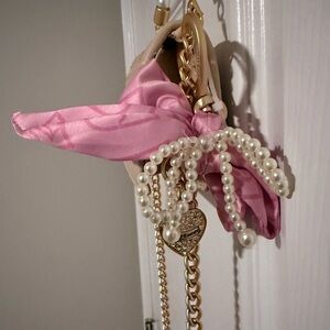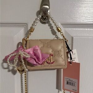 NWT Juicy Couture “Tie The Knot” Pearl Handle Mini Bag in Sandstone/Pink