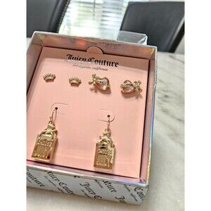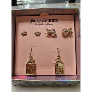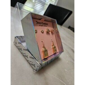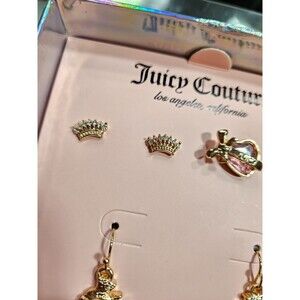 NWT Juicy Couture Women's Earring Set - Gold-Tone, Crown & Heart, with Gift Box