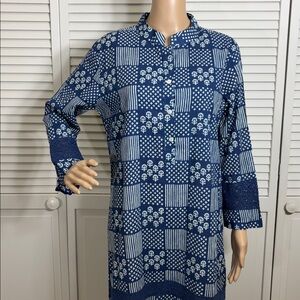 NWT Julia Amory Blue Floral Long Sleeves Kaftan Dress Large