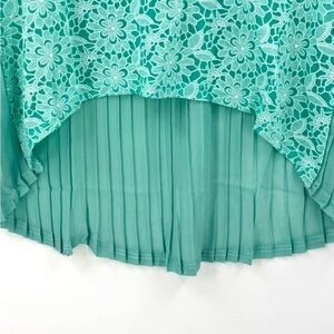 NWT Julia Short Sleeve Lace Overlay High-Low Pleated Hem Top w Rhinestone Pocket
