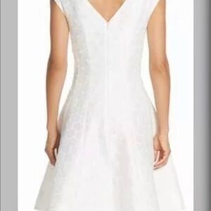 New with Tags Julia Jordan White Circle Flaire White Jacquard Print Dress Back Zipper V-Neckline & Back. Bottom Flaire Lined Women’s Knee Length Dress Size 8.