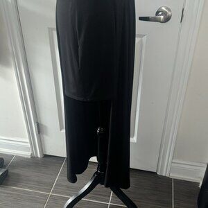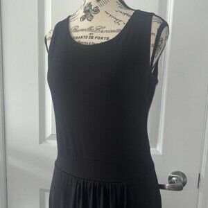 Made in the USA. Solid black stretchy women’s dress. Exposed side leg. Very cool split bottom dress. Comfortable. Perfect party formal dress for any event.