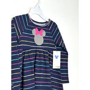 NWT Jumping Beans Disney Minnie Mouse Dress Girls Navy 2T Stripe LS Raglan Blue