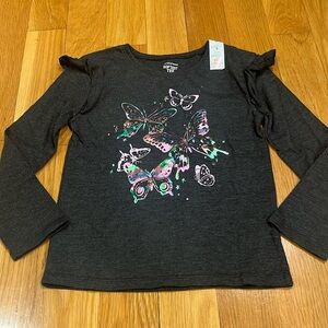 NWT Jumping Beans softest tee girls long sleeve with butterfly’s size 5 .