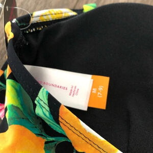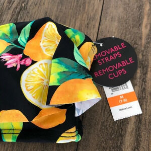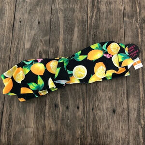 NWT Juniors 7-9 Black Lemon print Bandeau Bikini Swim Top Swimsuit strapless M